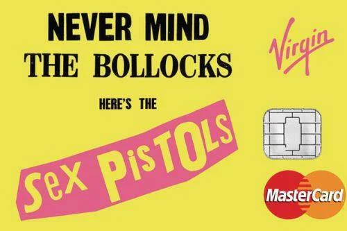/No suena excesivamente extraño, ni tampoco es algo que no pudiera preverse. Los ciclos se suceden más rápidamente y cada paso adelanta el siguiente. No se puede ser rebelde cuando la rebelión es la norma. Lo realmente interesante es la forma en que pretende justificarlo su director financiero Michael Greene. ¿Are you ready? Ahí va: La compañía Virgin ha comercializado dos tarjetas de crédito con los diseños que hiciese Jamie Reid para los Sex Pistols, concretamente el del gran Never Mind the Bollocks, Here’s the Sex Pistols. Hay una tercera tarjeta: Anarchy in the UK.
