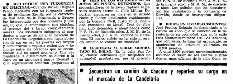 Atraco y reparto de embutidos en Sevilla (ABC, 11 de enero de 1978)