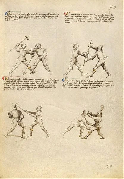 /Publicado en 1409, Flor de las batallas es un hermosísimo e ilustrado manual de combate cuerpo a cuerpo y a caballo. Su autor aseguraba que su estudio podría hacerte invencible