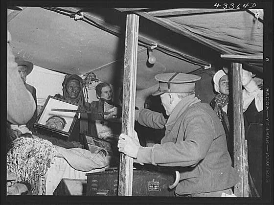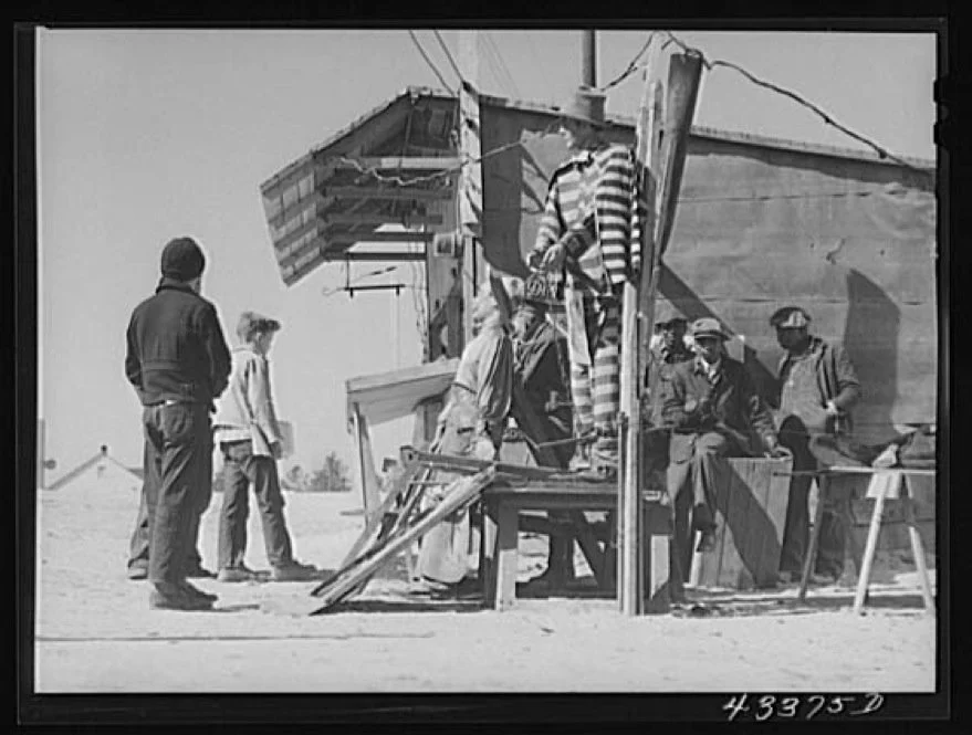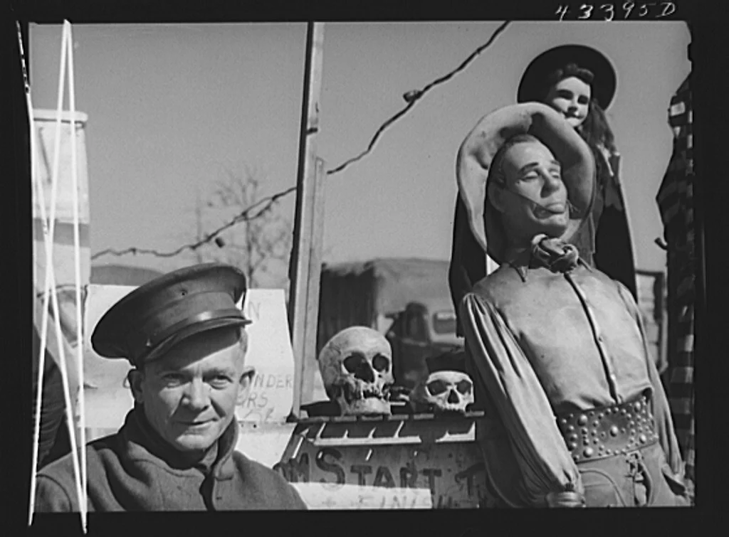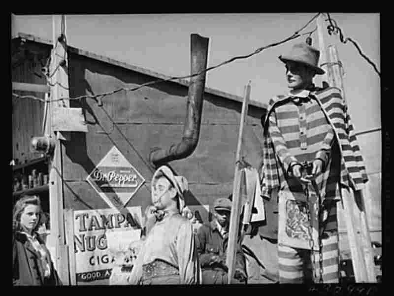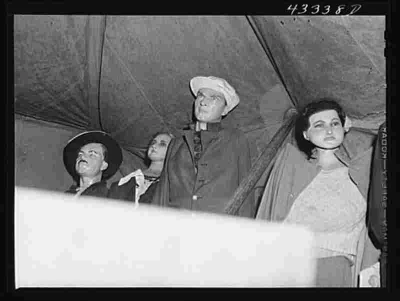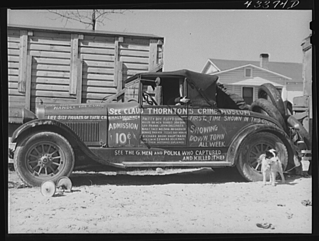 /En los antiguos y recónditos Apalaches, tierra de forajidos y buscadores de suerte, de balas perdidas y gente singular, en Fort Bragg, Carolina del Norte, se levantó un pequeño y destartalado Museo del Crimen. Era el año 1941 y Jack Delano retrató aquel cúmulo de objetos, muñecos de cera, viejas pistolas, uniformes del ejército y emblemas de la guerra civil. En las fotografías podemos ver a buscadores de oro junto a presidentes, pistoleros e indios, hombres legendarios como Buffalo Bill junto a criminales y pandillas asesinas. Se exhibía en una vieja carpa. Delano (1914-1997) fue un histórico fotógrafo americano que tomó estas y otras muchas imágenes antes de marchar a Puerto Rico, donde también fue conocido por sus numerosas composiciones de folclore local.